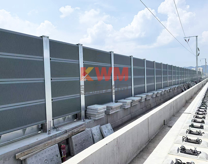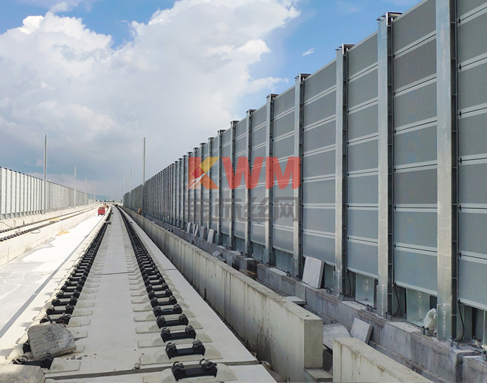高铁声屏障是安装在铁路沿线两侧,用来降低高铁运行对周边环境噪声污染的一种专用设施。高铁声屏障具有长寿命和免维护的特性。高铁声屏障需应对时速 300km/h + 的强气流冲击及高频轮轨噪声,其吸声板采用复合微孔吸声结构,经特殊阻尼处理,声学性能达到声学材料 A 级标准;H 型钢立柱采用 Q355B 高强度钢材,通过热浸镀锌防腐工艺,确保在严苛环境下的结构稳定性。安装声屏障虽需投入成本,但相比让线路绕行敏感区域,其经济效益很好。同时,其环境效益也很突出,能有效保护铁路沿线居民的生活质量,使声环境满足标准要求。