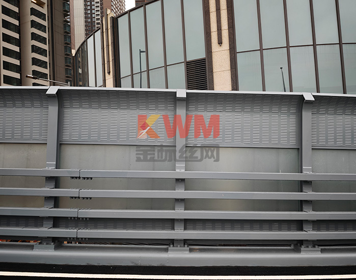 工程情况:该高架桥声屏障高度为2.4米,采用复合结构设计。面板为铝板,背板选用镀锌钢板,中间层嵌设磨砂玻璃,兼顾吸声隔音与结构耐久性,整体兼具功能性与环境协调性。